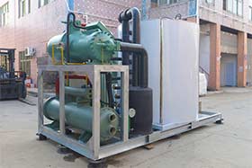 2、30噸制冰機(jī),采用螺桿壓縮機(jī),或者多臺(tái)活塞機(jī)并聯(lián),但造價(jià)較高。一般采用比澤爾螺桿機(jī)180Y/140P,或者漢鐘螺桿