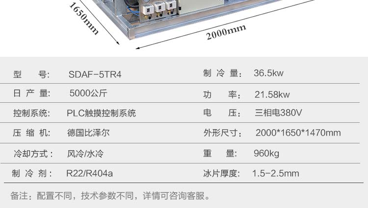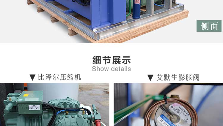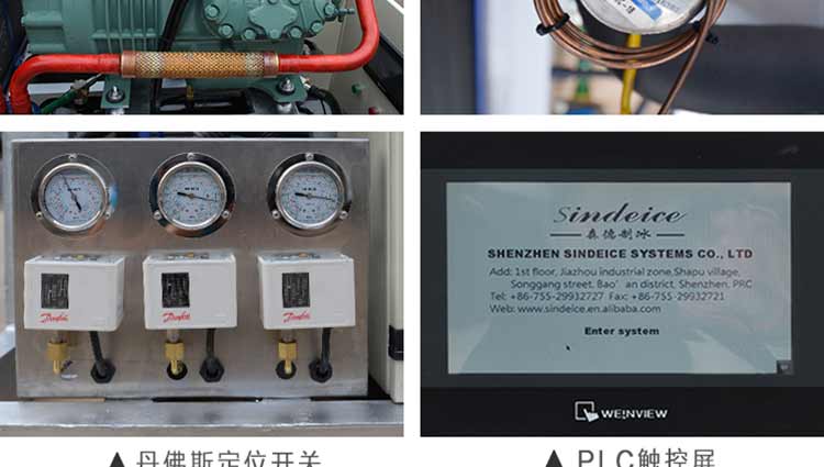 4.采用一線品牌制冷配件:德國比澤爾、丹麥丹佛斯、美國谷輪、臺灣漢鐘壓縮機、意大利萊富康等知名壓縮機,丹佛斯電磁閥、膨脹閥、干燥過濾器、美國愛默生膨脹閥等制冷配件,片冰機質(zhì)量可靠,故障率低,制冰效率高。